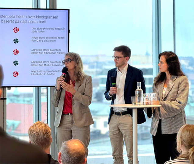 Särskilt intressant är de betydande flödena mellan Moderaterna och Socialdemokraterna, samt Liberalernas något oproportionella dragningskraft på Centerpartiets väljare. Denna data ger viktiga insikter om väljarnas flexibilitet och kan vara avgörande för partiernas strategier inför kommande val. Seminariet belyste hur opinionsläget fortsätter att vara i rörelse, med betydande möjligheter för blockbyten.